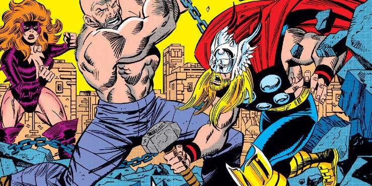 Sebelum identitas asli Red Hulk diketahui yaitu Jendral Thunderbolt Ross, Red Hulk bertarung melawan Thor dan pertarungan mereka bahkan sampai ke luar angkasa. Red Hulk melompak ke luar bumi sambil memegang Mjolnir, karena pada saat itu tangan Thor masih memegang tali dari Mjolnirnya. Ketika berada di luar angkasa, Red Hulk akhirnya berhasil memisahkan Mjolnir dari Thor. Sejak saat itulah Red Hulk dan Thor sering bekerja sama dalam berbagai urusan yang ada kaitannya dengan Avengers.