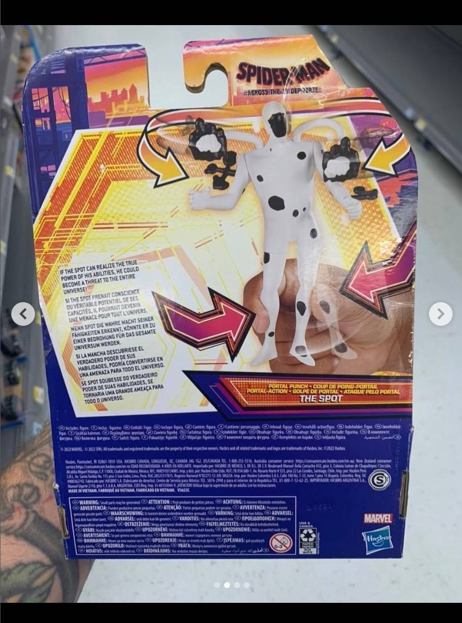 Merchandise resmi untuk film Spider-Man Across the Spider-Verse memberikan sedikit petunjuk tentang apa yang akan terjadi di filmnya nanti. Di bagian belakang kemasan Merchandisenya, tertulis deskripsi yang menjelaskan awal perjalanan The Spot. “Jika The Spot dapat menyadari potensi kekuatan sebenarnya, dia bisa menjadi ancaman bagi seluruh alam semesta.” Itu berarti filmnya akan menampilkan awal mula The Spot saat ia menyadari kekuatannya sendiri.